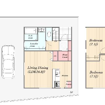 洗面室兼ランドリールーム完備の3LDK新築一戸建てです。