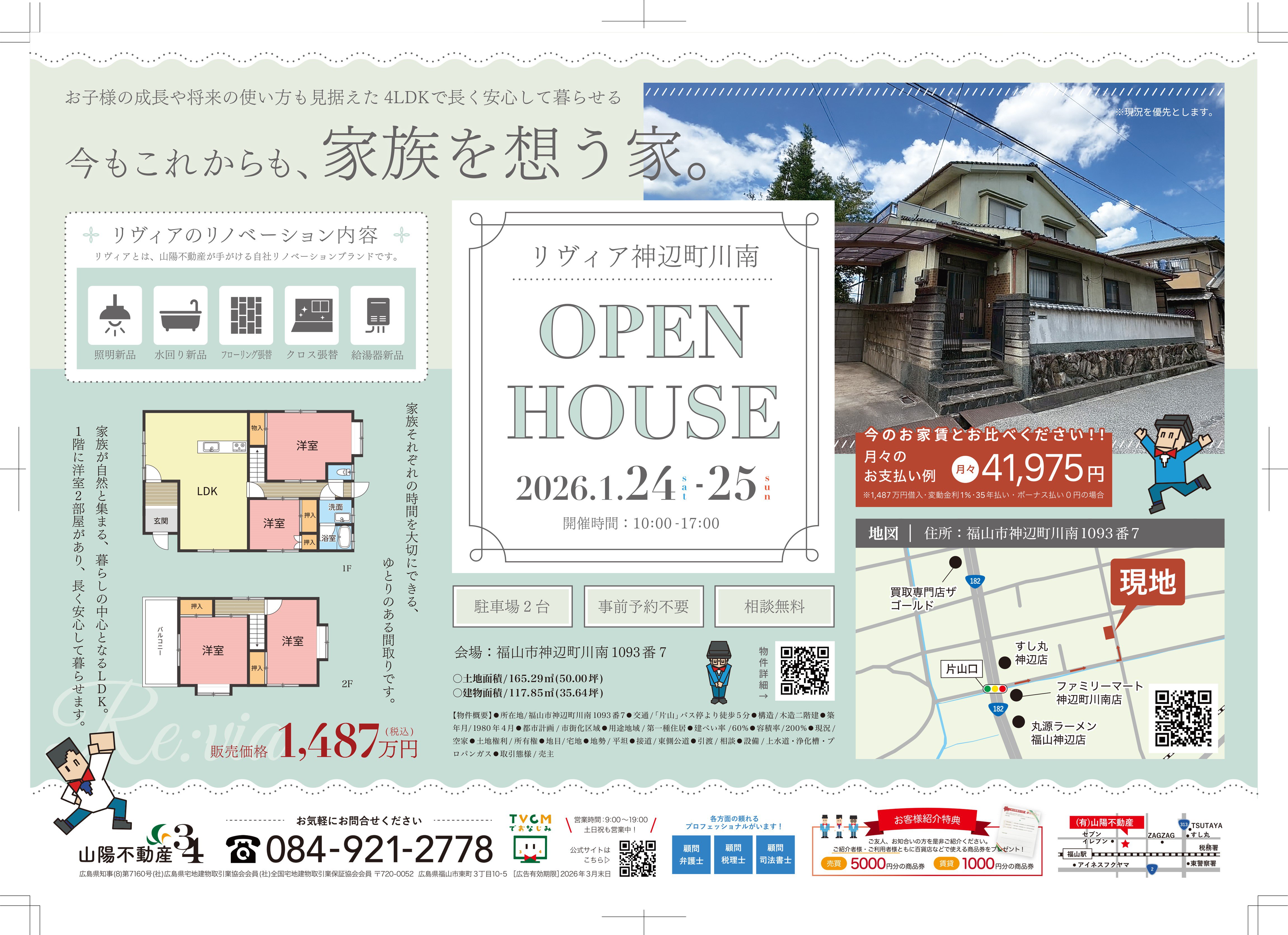 他にも引渡し後2年間、山陽不動産独自の保証で安心して暮らしていただけます☆